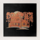 Halloween Creepy Haunted House By http://www.thefabricseal.zazzle.com es un ilustracion de dibujo a lápiz de color de apariencia espeluznante de una casa de campo aterradora. Las hojas de follaje coloreadas de otoño, los grandes árboles altos y la gran casa de artesanos de madera brillan con la luz de la noche de la luna dorada de naranja amarilla de la cosecha completa iluminando otra divertida y aterradora noche de Halloween llena de duendes, demonios y trucos o dulces que se preguntan por toda la ciudad.