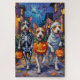 Los adorables 'Terriers de la Fox' con trajes juguetones de Halloween llevan cubos de calabaza mientras truco o truco bajo el cielo de la luna. Este diseño festivo resalta el abrigo lúdico de la raza, la expresión de alerta y la personalidad energética, capturando a la perfección la atmósfera espeluznante y divertida de la noche de Halloween. Una alegre y animada celebración para los amantes del perro y fans de Halloween por igual.
