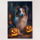 Puzzle Halloween Shetland Sheepdog con calabazas asustada