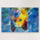 Esta impresión de arte muestra un impresionante retrato abstracto de un perro, repleto de colores vibrantes y pinceladas expresivas. La mezcla de azules ricos, amarillos y naranjas crea un diseño dinámico y llamativo que celebra la belleza del mejor amigo del hombre. Perfecto para los amantes del perro y los amantes de la decoración moderna y colorida, esta pieza aporta calidez y personalidad a cualquier espacio. Un regalo ideal para los aficionados a los animales o una audaz declaración para su pared.