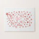 Puzzle Hand-Drawn Romantic Line Art Face with Hearts and