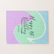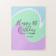 Puzzle Happy 1st birthday pink green blue acrylic pour