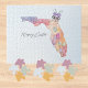 Send warm Easter greetings from the Sunshine State with this unique Florida-themed jigsaw puzzle. The design features a Florida State map in pretty pastel colors with beautiful pastel Easter eggs. A whimsical Easter bunny head with heart shaped glasses and a purple bow completes the design. The text reads "Happy Easter." This one-of-a-kind puzzle is available in various size options. Please browse the entire collection of Florida themed Easter cards, gifts, and home decor. Special design requests accepted.