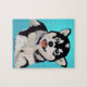 Este patrón de Husky Puppy está lleno de emoción y diversión. El fondo de las torques refleja los ojos de Husky. Está claro que esta bolsa tiene cualidades que aumentan. Lleve al gimnasio, a las tiendas o simplemente ordene su zona de estar. Sí, hará que llevar artículos al piso de arriba sea fácil. ¡Colgado en un gancho adorna cualquier habitación y alegra el día!