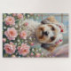 Puzzle Havanese Peeking from Valentine's Rose Bouquet