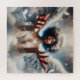 Etéreo arte surrealista. Bonito ilustracion de un bello ángel afroamericano con las manos afuera como si estuviera ofreciendo buena energía.