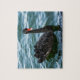 Un hermoso cisne negro a flote en un mar azul en este maravilloso rompecabezas.