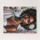Este rompecabezas presenta una pintura radiante de una elegante mujer afroamericana adornada con joyas de inspiración vintage, exudando belleza y gracia eterna. Su rica y profunda complejidad resplandece contra un telón de fondo de exuberantes rosas, margaritas y delicadas flores silvestres, enfatizando su presencia divina y etérea. Usa un vestido blanco suave y cubierto de bata, que recuerda a la vestimenta clásica griega o romana, realzando su aura regal y diosa. Una delicada rosa blanca se mete en su voluminoso y rizado cabello, acompañado de brotes de aliento del bebé, que simbolizan pureza, feminidad y elegancia natural. Sus aretes de araña de araña y un intrincado collar de diamantes chispean, añadiendo un elemento de lujo y sofisticación. El suave fondo pastel, mezclado con los acentos florales, crea un ambiente romántico y onírico, haciendo de esta obra una representación perfecta de la belleza, la elegancia y la armonía de la naturaleza. La belleza rica en melaninas representa a Virgo.