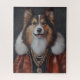 Este caprichoso rompecabezas estriado presenta un perro pastelero de shetland vestido con equipo de hip hop con cadenas de oro y un abrigo de piel con collaras. Perfecto para el amante de los estantes en tu vida.