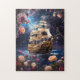 Una divertida imagen de fantasía de la Victoria de HMS, rompecabezas de la sierra del barco de Lord Nelsons. Viajar por la galaxia con planetas y empezar en el cielo.