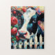 Puzzle Holstein Cow Picket Fence Red Roses Black Red