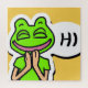 Este alegre gráfico de arte digital generado por computadora muestra a un hombre con una sonriente cabeza de rana saludando. El arte es de estilo pegatina personalizado y amarillo intenso. Este gracioso y feliz hombre de rana fue creado usando una generación de imágenes de la fuente de IA DALL-E, ¡y seguramente será divertido para los fans de la tecnología, el nuevo arte y las ranas! Hace un gran cumpleaños, Navidades u otro regalo de vacaciones.