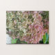 Las variaciones intrincadas en el color y la textura de las hermosas flores de hidrangea hacen de esto un rompecabezas divertido en el que relajarse. Se pueden ver algunos toques de hojas verdes brillantes o la piedra gris del camino del jardín. La mayor parte del rompecabezas presenta los pétalos de la flor, en tonos suaves de rosa y verde. Diversión para uno, para una pareja o para que la familia lo haga juntos.