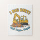 A playful and engaging cartoon illustration of a happy yellow excavator with a big scoop full of dirt, colorful blocks, and a tiny, surprised green dinosaur. The design features the charming text: "I DIG DIRT! And Toys... Oops!". This artwork is perfect for young construction enthusiasts and anyone who loves a good-natured blunder. It encourages imaginative play and the fun of digging and discovery.