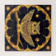 Ilustracion estilizado de una lechuza colgada en una rama rodeada de motivos dorados y azules, que evoca un ambiente mágico y místico, ideal para la decoración o el arte.