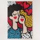 Un vibrante y juguetón ilustracion de arte pop mostrando a una pareja enamorada. La obra de arte tiene motivos audaces, colores brillantes y corazones caprichosos, enfatizando el tema del romance y el afecto. Perfecto para diseños de San Valentín, tarjetas de felicitación o proyectos románticos.