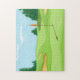 Este es un rompecabezas desafiante para cualquier aficionado al golf. Cuenta con un ilustracion acuático de un campo de golf verde en un día soleado. Árboles, trampas de arena y cielo azul aparecen al fondo.