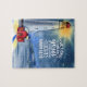Inspiradora cita escritura rompecabezas de jigsaw representa un faro acuarela con la luz brillando a través del cielo azul de noche lleno de nieve. Presenta una parte de la Biblia Verse Isaiah 60:20, "El Señor será tu luz eterna".