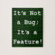 It's Not A Bug; It's a Feature! An old inside joke in the world of computer programmers. Next time your boss or customer tells you to debug your code, tell them this! The text with a background of machine language. Design by Henry Nelson of Wichita Kansas.