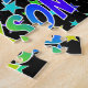 Este emocionante y divertido diseño de rompecabezas con temática de cumpleaños muestra el mensaje "FELIZ CUMPLEAÑOS, JACKSON" con los personajes que tienen un coloreado patrón de gradiente inspirado en el espectro del arcoiris, junto con un vibrante patrón de fondo de campo de estrellas. Un rompecabezas colorido como este podría ser una manera divertida de enviar saludos de cumpleaños a alguien llamado Jackson. [~Z0000468]