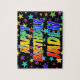 Este vibrante y divertido diseño de rompecabezas con temática de cumpleaños muestra el mensaje "FELIZ CUMPLEAÑOS, JADEN" con los personajes que tienen un coloreado patrón de gradiente inspirado en el espectro de arcoiris, además de un dinámico patrón de fondo de campo estrella. Un acertado rompecabezas como este podría ser una manera divertida de enviar deseos de cumpleaños a alguien llamado Jaden. [~Z0000468]