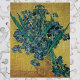 Naturaleza muerta: jarrón con lirios contra un fondo amarillo de Vincent van Gogh es una pintura vintage de arte fino postimpresionista de naturaleza muerta floral. Un impresionante ramo de hermosas flores de lirios púrpuras con barba de un jardín de primavera en un jarrón. Colores clásicos estilo Country Francés con tonos dorados y azules.