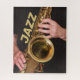 ¡Para los aficionados al jazz! Un desafiante rompecabezas que muestra la imagen de un jazzmán tocando su reloj saxofón tenor, dorado y gastado en el tiempo, junto con la palabra "JAZZ" impresa en letras en bloques de color oro. ¡Diversión para toda la familia! NOTA: Imagen no diseñada para el estilo del rompecabezas cuadrado.