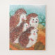 Jóvenes erizos hablando entre ellos. Ilustracion de un libro ilustrado "La historia del invierno blanco" escrito e ilustrado por Julia Doria.