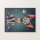 Puzzle Judging Sphynx Cat UFO Space Cartoon Art