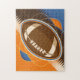 Diseño contemporáneo de un fútbol americano en tonos marrón, naranja y azul.