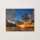 Rompecabezas de juego mostrado con una foto impresa de una bella escena de atardecer oceánico. Personalizar este artículo o compra tal cual. Imagen de stock