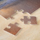Rompecabezas de juego mostrado con una foto impresa de una bella escena de atardecer oceánico. Personalizar este artículo o compra tal cual. Imagen de stock