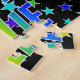 Este emocionante, divertido, diseño de rompecabezas con temática de cumpleaños tiene el mensaje "FELIZ CUMPLEAÑOS, JULIE" con los personajes con un colorido patrón de gradiente inspirado en el espectro de arcoiris, además de un vibrante patrón de fondo de campo estrella. Un rompecabezas colorido como este podría ser una manera divertida de enviar un mensaje de bienvenida de cumpleaños a alguien llamado Julie. [~Z0000468]