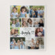 Juntos Hacemos Un Rompecabezas Fotocardíaco De Familia 9. Juntar diversión familiar y recuerdos con este rompecabezas personalizado que presenta nueve de sus fotos familiares favoritas con el título JUNTOS HACEMOS UNA FAMILIA en la tipografía de escritura moderna acentuada con un latido cardíaco y su nombre familiar. Diseñado con una plantilla de collage de fotos fácil de cargar con fotos cuadradas y rectangulares de varios tamaños en la elección de texto, gráficos y colores de fondo (mostrados en blanco y negro), este rompecabezas es a la vez un placer y una actividad para disfrutar. Perfecto para noches de juego, vacaciones o como un regalo reflexivo, es una manera única de revivir momentos especiales pieza a pieza. OPCIONES DE PUZZLE: El ejemplo se muestra en el tamaño de 16x20" con 520 piezas; en la página de pedidos hay disponibles otros tamaños y número de piezas. ASISTENCIA: Para obtener ayuda con la modificación del diseño o la transferencia del diseño a otro producto, póngase en contacto con el diseñador ANTES DE PEDERLO a través de la pestaña MENSAJE de chat Zazzle o envíe un correo electrónico a makeitaboutyoustore@gmail.com.