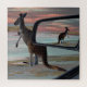 En la playa se ve un canguro que tiene un rasguño con la misma imagen invertida en un espejo de auto