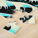 This Asian inspired koi fish jigsaw puzzle is influenced by the fine art Great Wave off The Great Wave off Kanagawa by the artist Hokusa from as well as Japanese comic style. The Great Wave lifts up the fish in a yin yang swirl, with Mount Fuji in the background. The primary colors are a turquoise aqua blue, deep orange, black, and cream, with some half tone dotted patterns to emulate comic book style. This puzzle would be a great addition for game night, a gift for a family member, after school activity, or senior living facility.