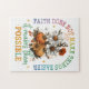 Diseño pacífico y colorido con una escena otoño/otoño con calabazas y flores caídas. El colorido texto inspirador dice: "La fe no hace las cosas más fáciles, las hace posibles". Este diseño está disponible en una amplia variedad de productos.