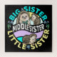 El arte de la Hermana Media tiene palabras Hermana Grande y Hermana Pequeña - ¡porque el sis medio es a la vez una hermana grande y un poco pequeña! Tres animales de sepultura representan a todos los hermanos. > Cute arte del orgullo de la hermana media para excitar a una hija que va a ser una hermana mayor! > ¡Personalízalo! Agregar nombre, foto o texto personalizado.