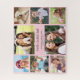 Dale a la tía más grande del mundo un divertido rompecabezas de collage de fotos personalizadas que ella valorará y disfrutará durante años. Puedes personalizar con ocho fotos familiares de sobrinas, sobrinos, otros miembros de la familia, mascotas, etc., y si se llama "tía", "tía", "Tia", etc., y agregar nombres, todo con escritura gris claro y tipografía en un fondo rosado.