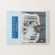 Regale al abuelo en su vida un rompecabezas fotográfico personalizado con la frase "el mejor abuelo del mundo" en un fondo azul y blanco de gingham. Parte de una colección de Parcel Studios.