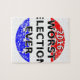 Los peores candidatos de la historia. Círculo en rojo, azul y blanco, texto en negro con contornos blancos. Efecto angustiado aplicado al diseño.