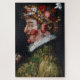 Giuseppe Arcimboldo (1526 o 1527 - 11 de julio de 1593) fue un pintor italiano más conocido por crear cabezas de retrato imaginativas hechas enteramente de objetos como frutas, verduras, flores, pescado y libros. Estas obras forman una categoría distinta de sus otras producciones. Era un pintor convencional de retratos de tres emperadores sagrados romanos en Viena y Praga, que también producía temas religiosos y, entre otras cosas, una serie de dibujos de colores de animales exóticos en la menagerie imperial. Se especializó en composiciones simbólicas grotescas de frutas, animales, paisajes o diversos objetos inanimados dispuestos en formas humanas. Claramente, los retratos de la vida muerta fueron pensados en parte como curiosidades extravagantes para entretener a la corte, pero los críticos han especulado como el grado de compromiso serio con el neoplatonismo renacentista u otras corrientes intelectuales que tienen. Cita:Wikipedia