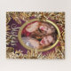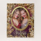 Marco dorado floral glamoroso con fondo morado y texto a personalizar.
