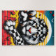 Este rompecabezas tiene un león a cuadros.