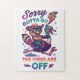 Diseño vibrante y colorido con un mapache personalizado vestido de gorra de vaquero tirando a un corredor de carreteras personalizado. El colorido texto dice: "Lo siento, tengo que salir las vibraciones están apagadas". Este diseño está disponible en una amplia variedad de productos.