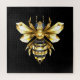 Oro, joyería, abeja poligonal con alas brillantes doradas sobre fondo negro. Animal de estilo poligonal. Abeja dorada.