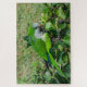 Pintura de loro verde silvestre en el arbusto verde en un parque en España. También conocido como el loro Monk o el loro Quaker