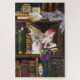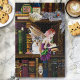 Dos gatitos y una hada se sientan sobre una estantería llena de libros para tu gato mágico.