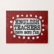 "Los profesores ingleses se divierten más" es un lindo diseño de texto en rojo con texto negro, junto con una forma de acento blanco y puntos caprichosos de textura blanca que lo rodean.