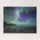 Foto natural de Aurora borealis, libre y morada, en la costa de Senja, una isla al norte de Noruega, Escandinavia. Foto © Sebastian Worm.